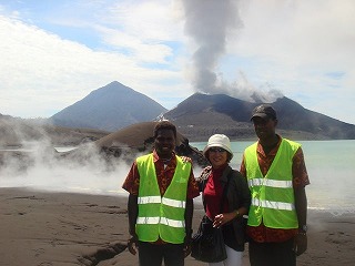 | 今も絶え間なく噴煙を上げているのが「ダヴルヴル山」 近年では1937年と1994年に大噴火を起こした。94年の噴火時には火山観測所が事前に警告を発したので、死傷者は数名にとどまったとか。火山に面した海岸は硫黄臭が漂い、砂浜からあぶくが立ち温泉が湧いている。